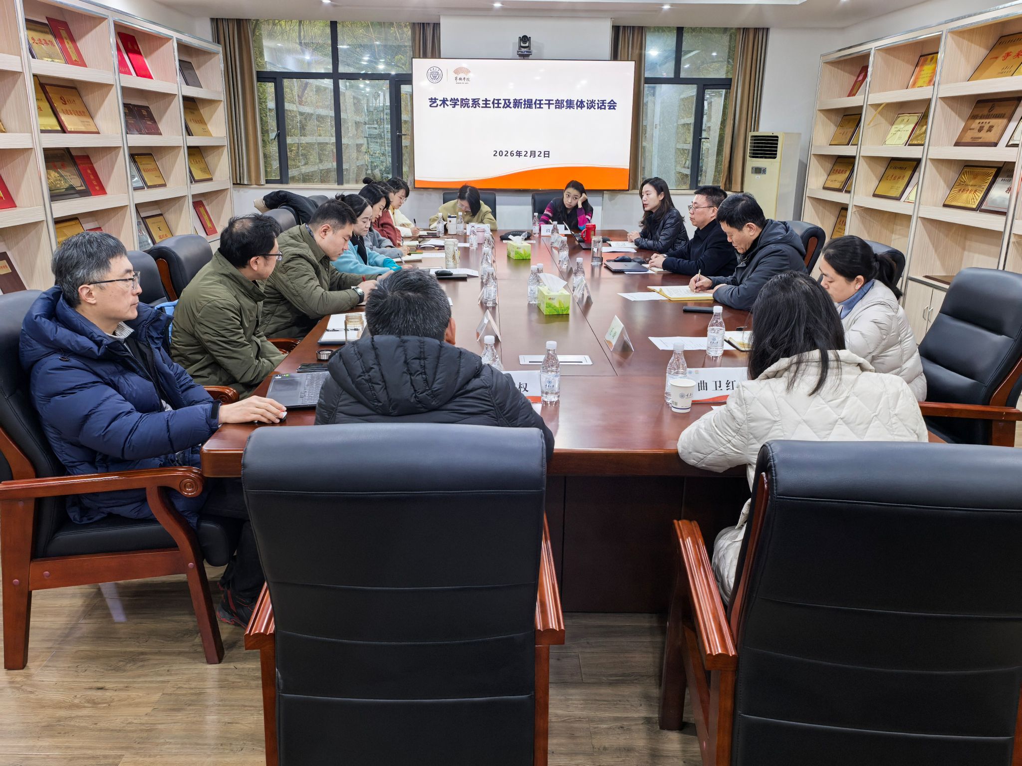 2026年2月2日上午,艺术学院在学院办公楼第一会议室召开系主任及新提任干部集体谈话会。学院党委书记蒋华林、院长张楠木主持会议,党委副书记、纪委书记王琦,副院长彭小希出席会议,各学系、学科专业建设办公室负责人参加会议。与会院领导分别进行了集体谈话,结合分管工作对与会系室负责人提出具体要求。张楠木在谈话中指出,希望全体系主任和新提任干部以此次任职为新起点,快速转变角色,提升履职能力,主动担当作为,牢...