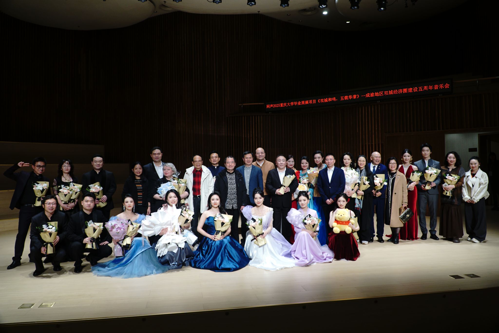 2025年11月9日晚,重庆大学同声2025“双城和鸣·五载华章”成渝地区双城经济圈建设五周年主题音乐会在重庆国泰艺术中心云瑚音乐厅圆满举行。音乐会由重庆大学党委宣传部主办,重庆大学艺术学院承办,重庆国泰艺术中心协办,并得到重庆市音乐家协会、四川省音乐家协会的指导,以艺术的形式回顾成就、凝聚共识,奏响成渝双城并肩前行的时代强音。音乐会在经典曲目《祝福三峡》的深情旋律中拉开帷幕。整场演出汇聚了独唱、重唱、合...
