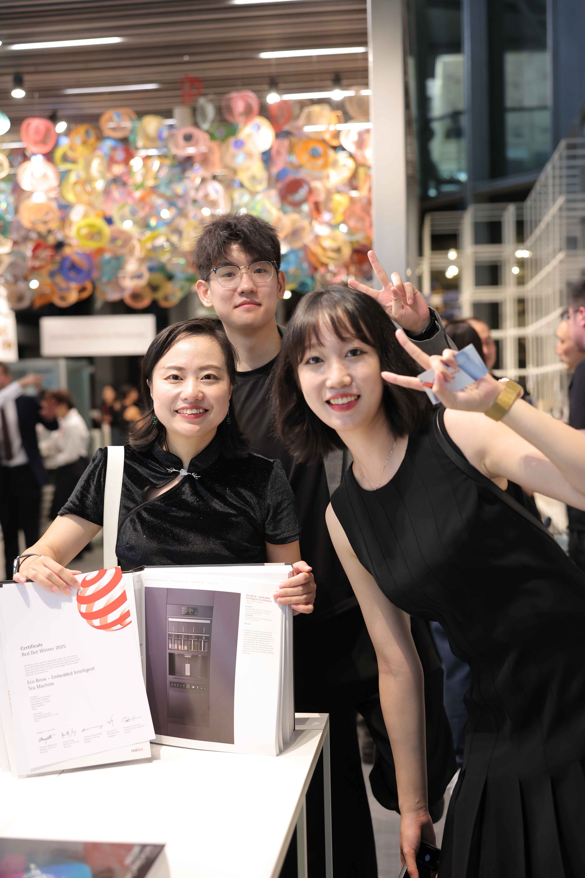 2025年10月15日,德国“Red Dot”红点设计概念奖颁奖盛典在新加坡国会剧院拉开帷幕。重庆大学艺术学院设计学系范正妍师生团队凭借优秀作品“Eco Brew-Embedded Intelligent Tea Machine”(作者:范正妍,夏丹妮,范遥瑶,杨楠,王轩麒,李岚岚,薛方正)斩获该奖项,团队受邀赴新加坡参加颁奖盛典。在盛典现场,成员们接过红点证书并与红点奖创始人兼主席彼得·扎克(Peter Zec)留影合照,充分展现了重庆大学设计力量的国际风采。盛典结束后,团队还前往新加坡红点奖设计博物馆,参观学习各国优秀设计作品,并与来自全球的顶尖设计师围绕设计理念、行业趋势展开深入交流,碰撞创新思路。