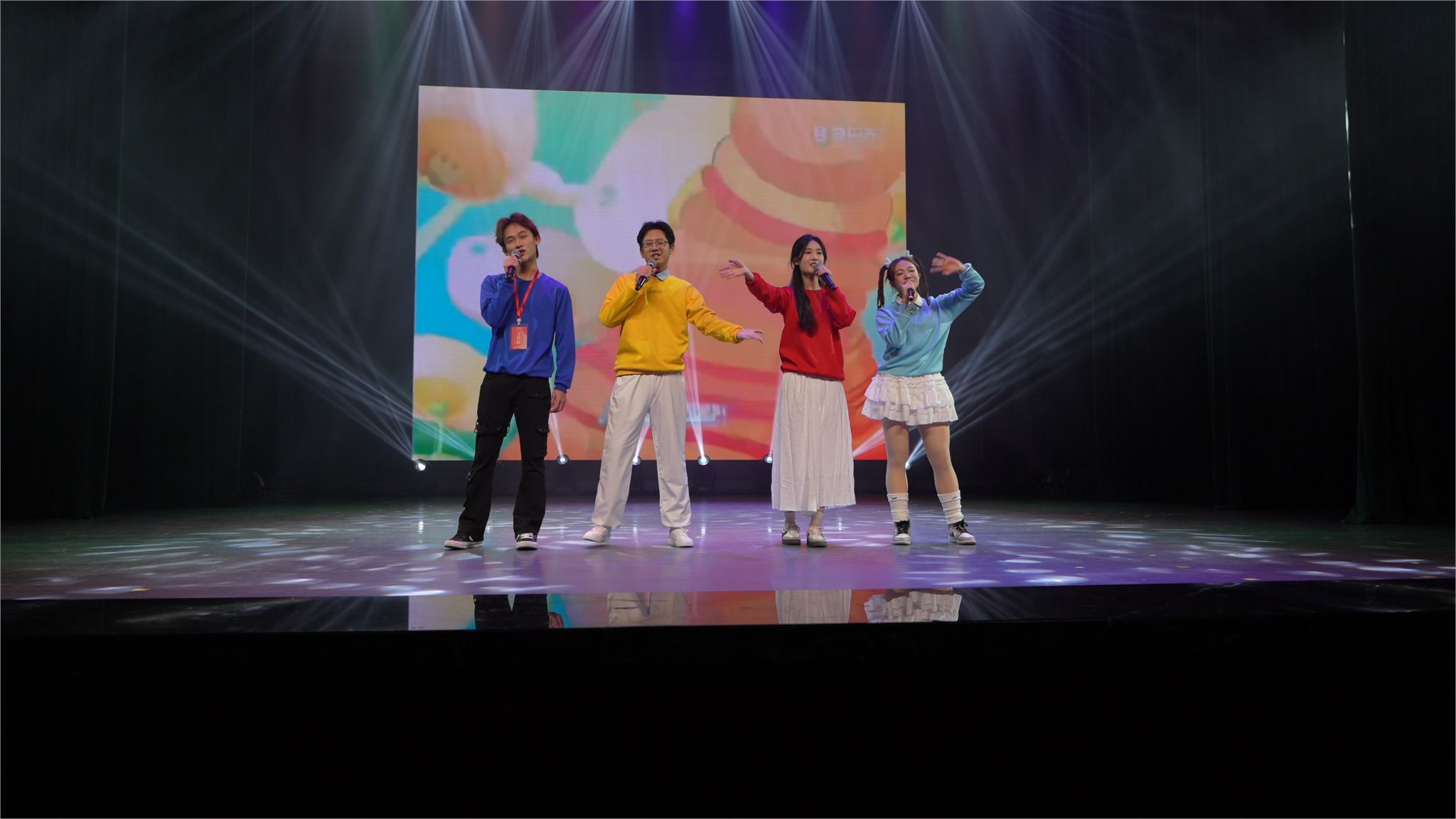 第二篇章《青春激荡 梦想飞扬》中,舞蹈系《醉春风》以扇影柳姿描摹江南春景,一柄折扇开合似风拂水面,裙摆漾起层层涟漪,把“春水碧于天”画进观众眼眸;学院行政管理老师们暖心献唱《相亲相爱一家人》,平日严谨的老师走下办公桌,用略带羞涩却真挚的和声让“家文化”沁润人心;音乐系《童年时光机》以纸飞机与蝉鸣唤醒纯真年代,旧课本、玻璃弹珠、傍晚的稻香统统乘旋律而来;舞蹈系2022级男生《山·行》将巴渝山川搬上舞台,足尖踏出青石板梯,背脊拱成绝壁峰线,写意流动山水,也写少年“会当凌绝顶”的倔强。