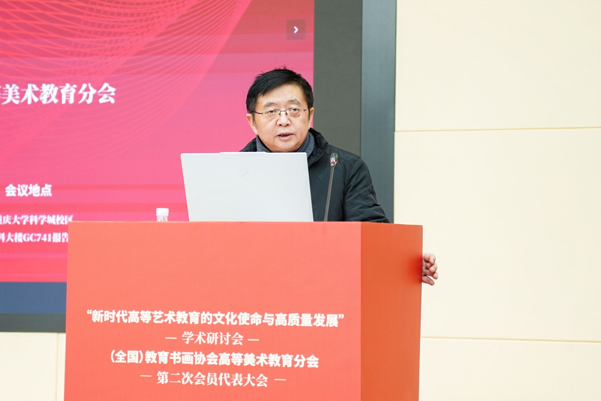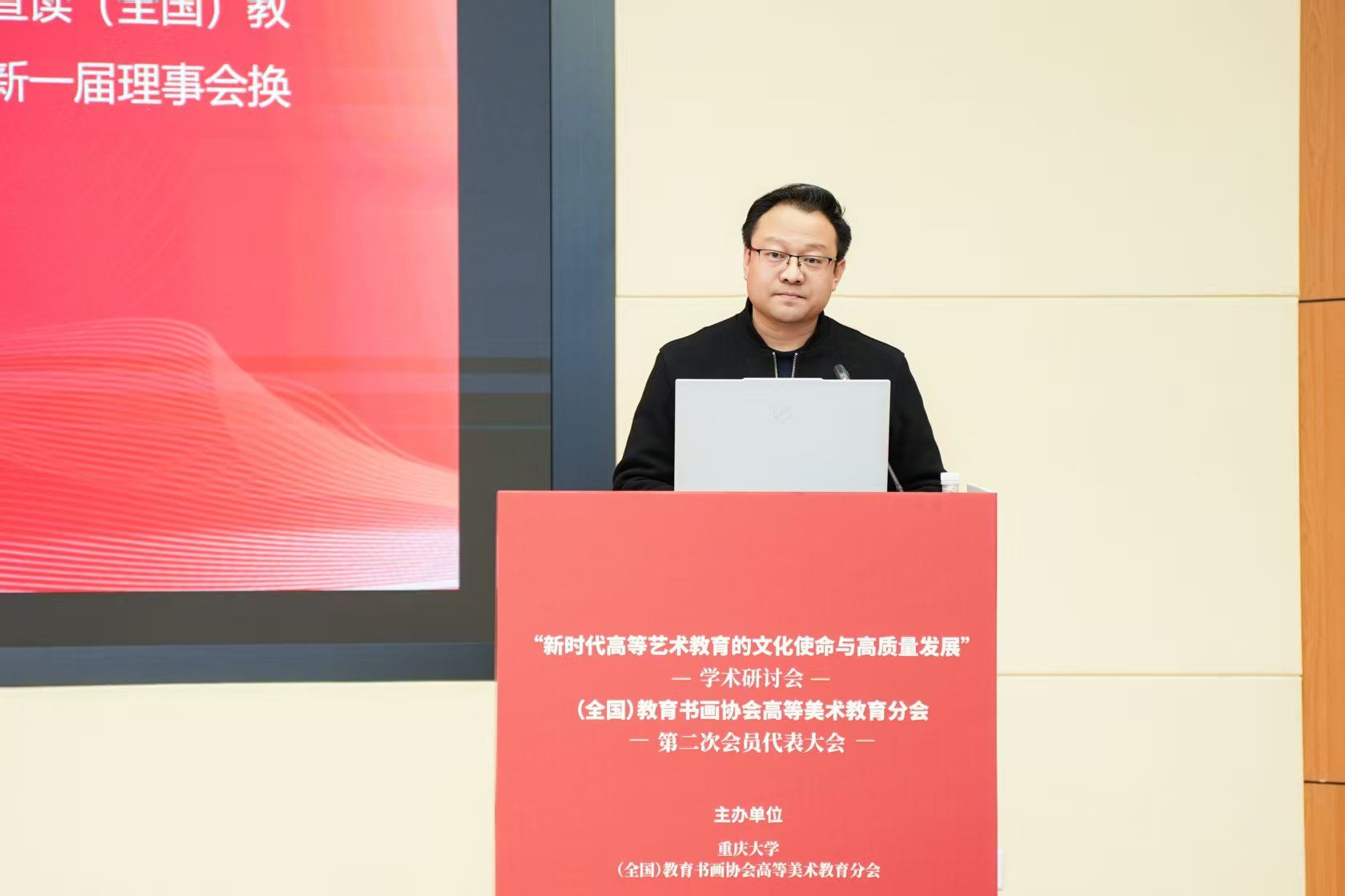 (全国)教育书画协会高等美术教育分会第二次会员代表大会2026年1月24日下午在重庆大学隆重召开。在庄严的国歌声后,大会按照议程进行选举,重庆大学艺术学院院长张楠木教授当选为(全国)教育书画协会高等美术教育分会会长。
