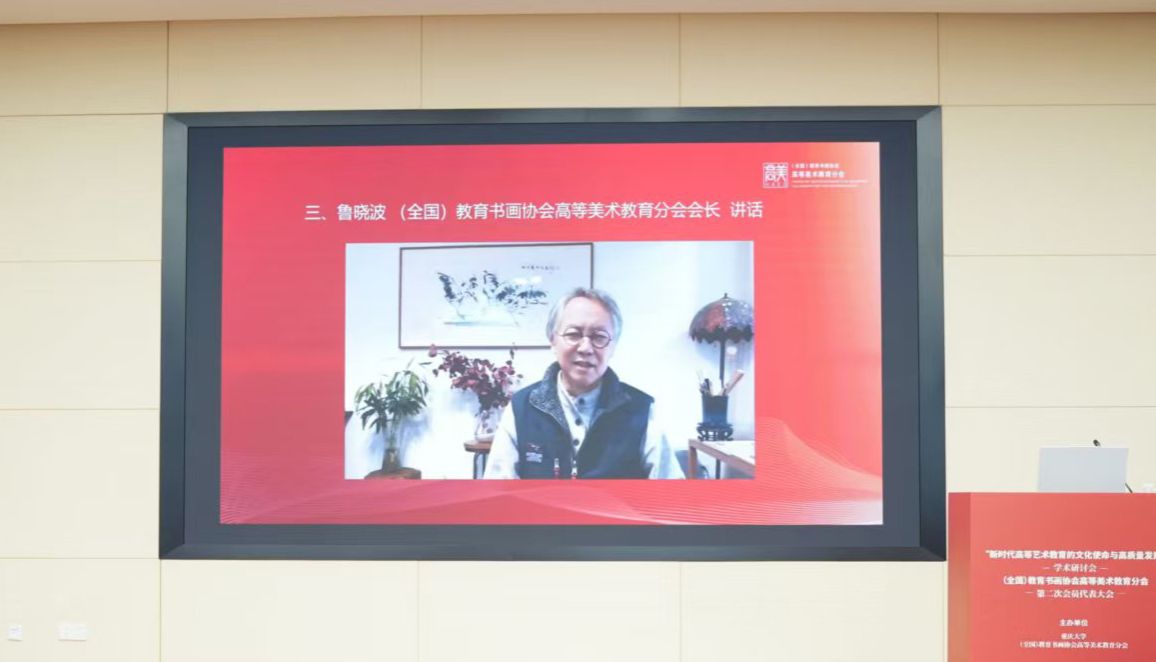 大会隆重聘任鲁晓波教授、范水教授担任分会名誉会长。张楠木教授在当选发言中指出,分会自创立以来取得了高等美术教育事业重要成绩,在新的历史起点,将带领分会从基础性、先导性、战略性维度审视高等美术教育的发展机遇及现实挑战,不断推进传统艺术教育与美育转型发展,在民主、开放、务实、创新的学术环境中开创分会教育事业新未来。(全国)教育书画协会会长刘利教授对新一届理事会和张楠木会长表示热烈的祝贺,对上一届理事会和鲁晓波会长表示真诚的谢意,并对新一届分会提出三点希望:一要聚焦育人质量这一核心任务,坚守艺术教育的根本使命;二要深化内涵建设这一关键路径,应对学科发展的机遇与挑战;三要拓展社会服务这一时代责任,彰显美术教育的时代价值。