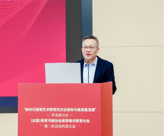 (全国)教育书画协会会长刘利在致辞中指出,高等艺术教育要以《教育强国建设规划纲要》为指引,肩负起文化强国建设重要使命,构建中国特色美术教育体系,深化“艺术+科技+人文”融合,落实美育浸润行动,培养德才兼备的优秀艺术人才,为建设文化强国和推动新时代艺术教育高质量发展贡献力量。